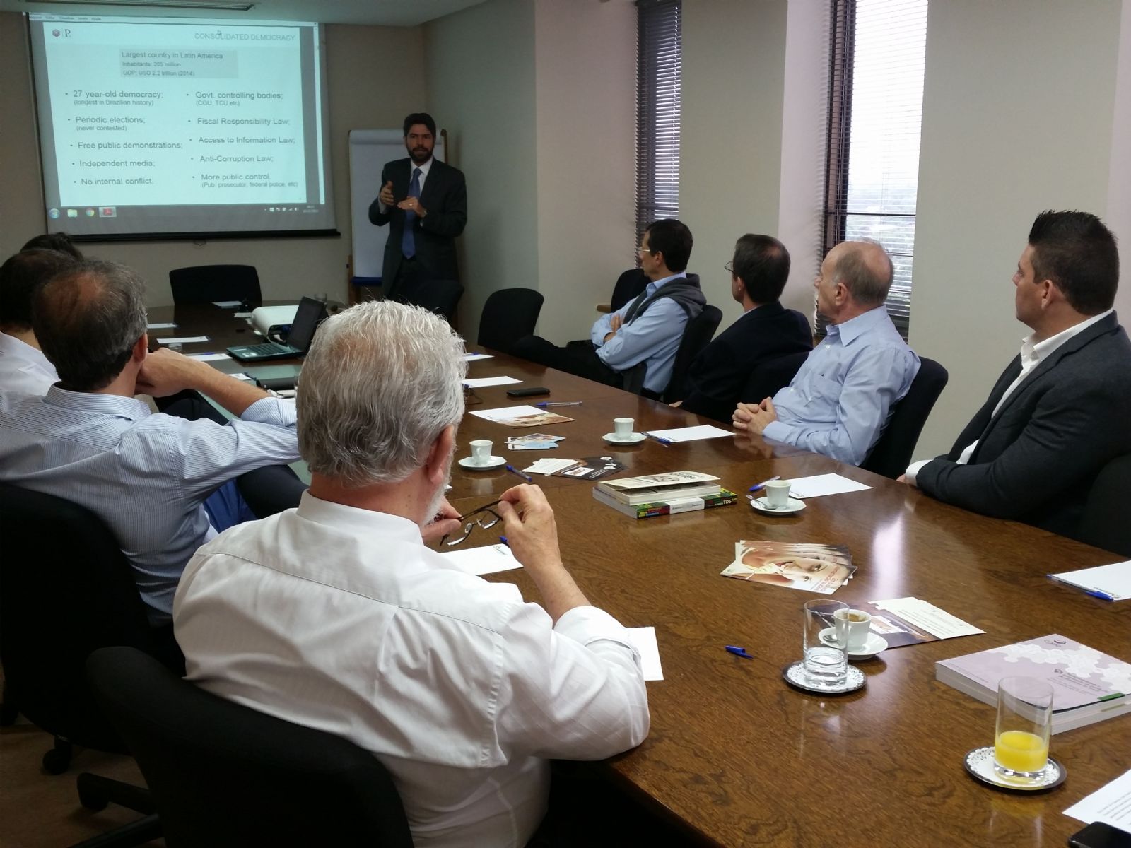 Em novembro, os associados do Sindustrigo participaram da palestra "Situação Política do Brasil" ministrado por Ricardo Sennes, doutor em Ciência Política pela Universidade de São Paulo (USP), coordenador do Grupo de Análise da Conjuntura Internacional da mesma universidade e parceiro não residente do programa latino americano do Atlantic Council.